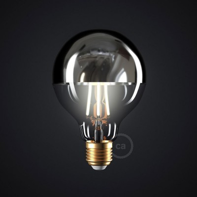 Žarulja 7W Globe G95 led sa srebrnom polovicom sfere kombinira tehnologiju štednje energije LED-a s toplim ugodnim vintage stilom. Žarulja je izrađena od prozirnog stakla, a njen donji kraj prekriven je srebrnom bojom radi jedinstvenog osvjetljenja. Žarulja ima sjaj od 806 lumena, što je jednako tradicionalnoj žarulji od 60 W. Sa svojom bojom i...