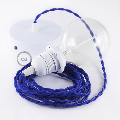 Sastavi viseću lampu sa sjenilom s tekstilnim kabelom TM12 Plava Zamotan rajon. Odaberite boju grla i rozete, dužinu kabela i da li želite već sastavljenu lampu ili u kompletu DIY "sastavi sam".Viseća svjetla su idealna za stilsko i koloritno oživljavanje vašeg doma. Ovisno o duljini kabela odlučite za stvaranje posebnih efekata; namotajte kabel i tako...