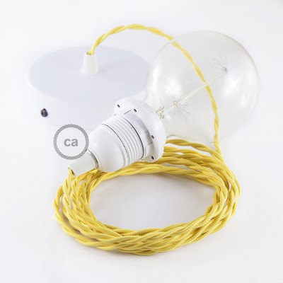Sastavi viseću lampu sa sjenilom s tekstilnim kabelom TM10 Žuta Zamotan rajon. Odaberite boju grla i rozete, dužinu kabela i da li želite već sastavljenu lampu ili u kompletu DIY "sastavi sam".Viseća svjetla su idealna za stilsko i koloritno oživljavanje vašeg doma. Ovisno o duljini kabela odlučite za stvaranje posebnih efekata; namotajte kabel i tako...
