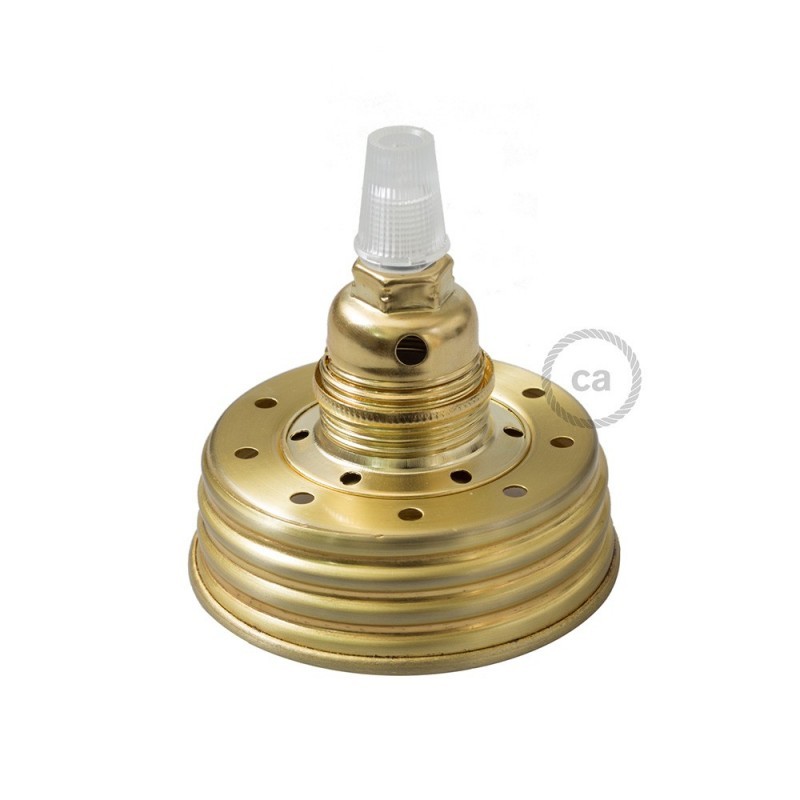 Komplet se sastoji od E14 grla za žarulju od mesing metala s dvostrukim prstenom i prozirnim produživačem, te je samo potrebno dodati žarulju i jedan od naših kabela obloženih tekstilom.