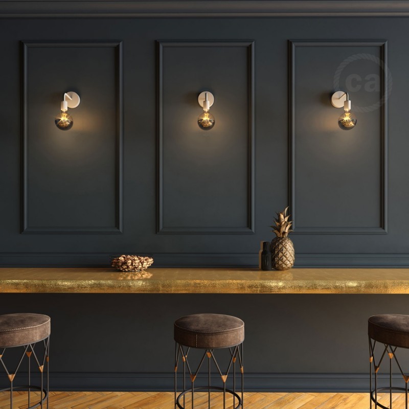 Uz bijelu metalnu savijenu cijev od 14 cm možete kreativno prilagoditi zidnu ili stolnu svjetiljku. Montirana na Fermaluce, omogućava preusmjeravanje svjetla pretvarajući svjetiljku u pravi reflektor.