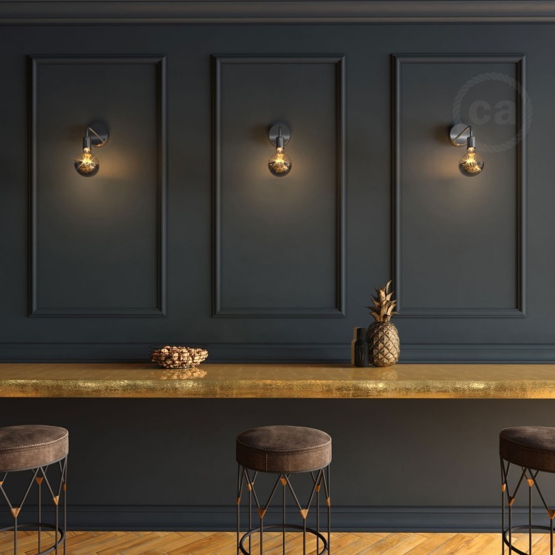 Uz savijenu metalnu cijev od 14 cm u boji tamnog srebra možete kreativno prilagoditi zidnu ili stolnu svjetiljku. Montirana na Fermaluce, omogućava preusmjeravanje svjetla pretvarajući svjetiljku u pravi reflektor.