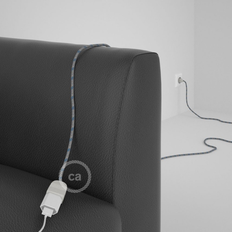 Produžni kabel za napajanje (2P 10A) Crte, Nebesko Plavi Pamuk i Prirodni Lan RD55 - Made in Italy