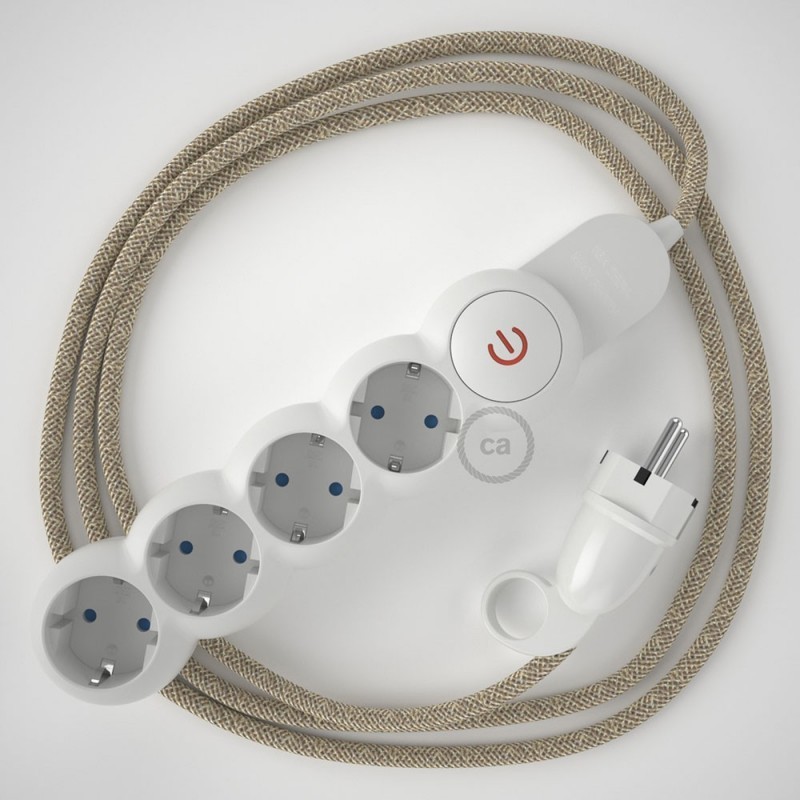 Razdjelnik s električnim tekstilnim kabelom Prirodni Lan RN01 i s udobnim šuko utikačem nije običan razdjelnik za napajanje!