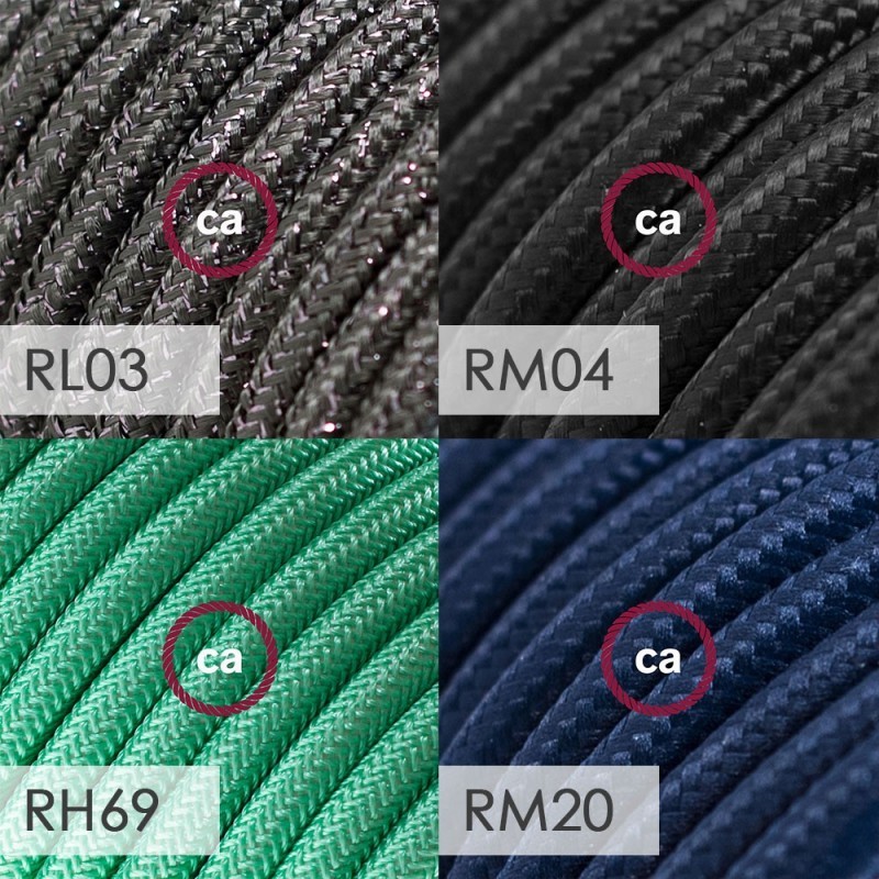 Okrugli tekstilni kabel: 2 m (150 cm od utičnice do prekidaća + 50 cm od prekidača do Posaluce) 2x0,75, HAR certifikat, Made in Italy