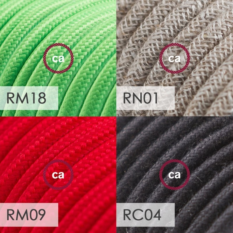 Možete konfigurirati Posaluce po vašoj želji! Odaberite između četiri vrste naših tekstilnih kabela iz kompleta koje smo već odabrali za vas ili naručite omiljeni kabel za prilagodbu stolne lampe po vašem ukusu.