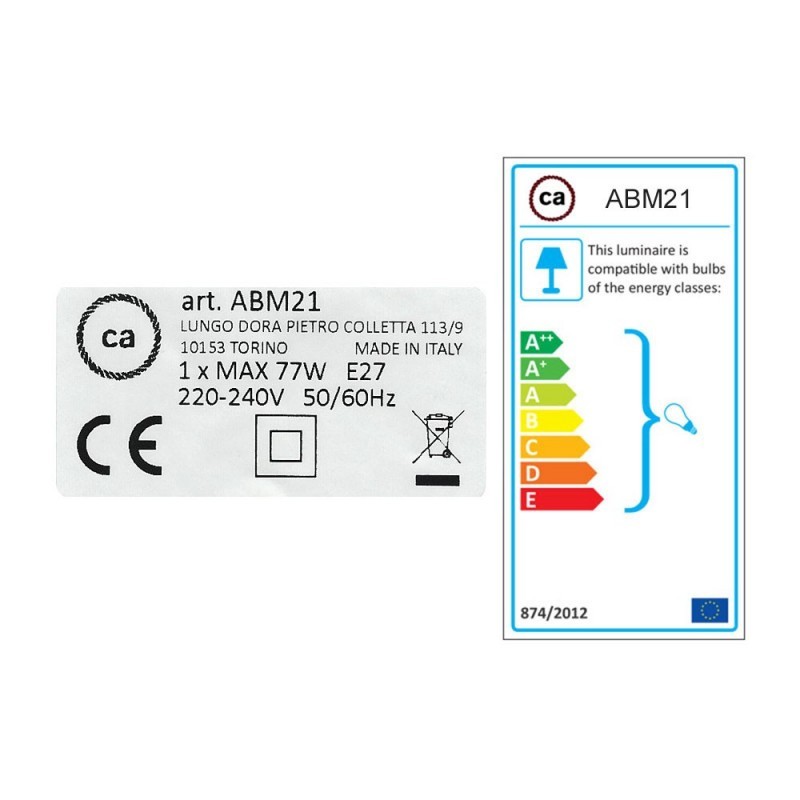 Okrugli tekstilni kabel: 2 m (150 cm od utičnice do prekidaća + 50 cm od prekidača do Posaluce) 2x0,75, HAR certifikat, Made in Italy