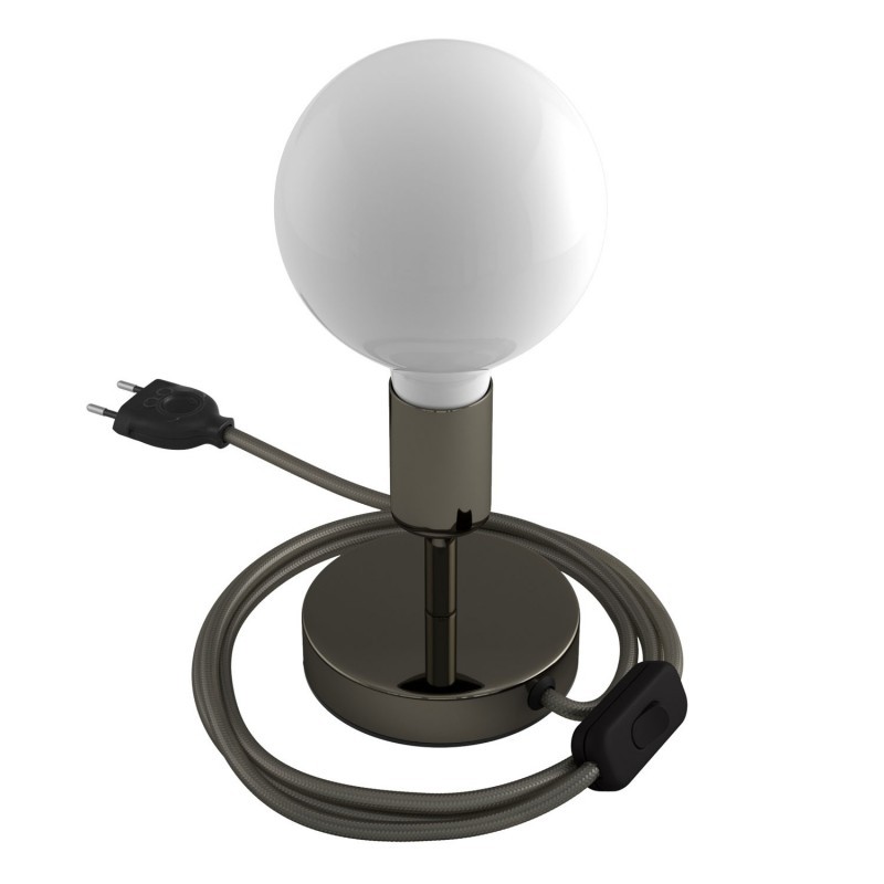 Metalna završna obrada može biti u mat bijeloj, mat crnoj, boji srebra, boji bakra, boji zlata i biserno crnoj boji. Za svaku boju imamo i odgovarajući kabel.Ako se osjećate stvarno kreativno, možete nam se javiti i predložiti drugu boju ili tkaninu i mi ćemo vam napraviti baš kakvu želite.