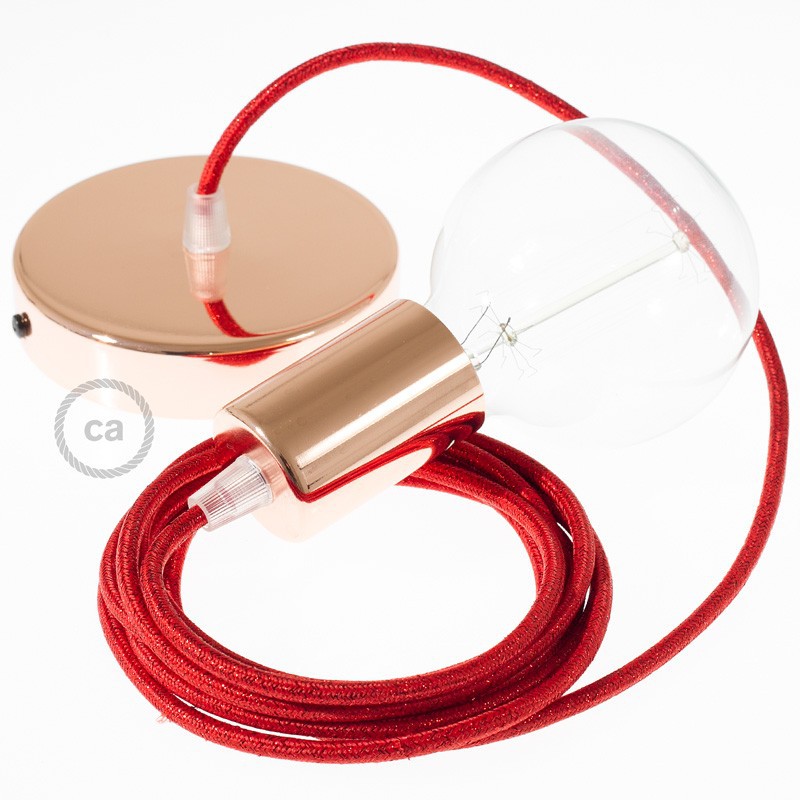 Sastavi viseću lampu s tekstilnim kabelom RL09 Crveni Okrugli rajon. Odaberite boju grla i rozete, dužinu kabela i da li želite već sastavljenu lampu ili u kompletu DIY "sastavi sam".
