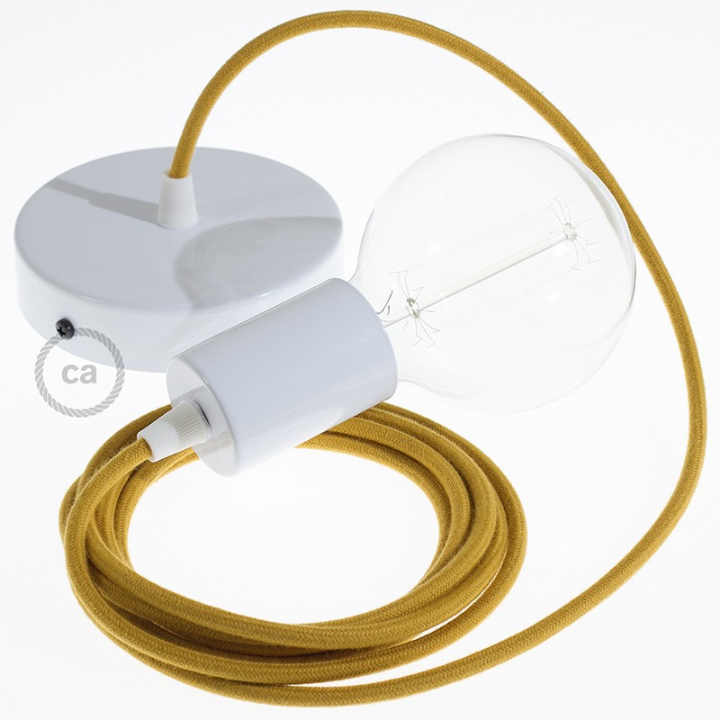 Sastavi viseću lampu s tekstilnim kabelom RC31 Medeno-Zlatni Okrugli Pamuk. Odaberite boju grla i rozete, dužinu kabela i da li želite već sastavljenu lampu ili u kompletu DIY "sastavi sam".