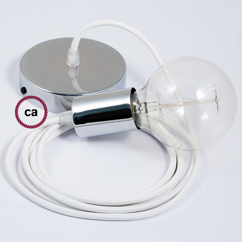 Sastavi viseću lampu s tekstilnim kabelom RM01 Bijeli Okrugli rajon. Odaberite boju grla i rozete, dužinu kabela i da li želite već sastavljenu lampu ili u kompletu DIY "sastavi sam".