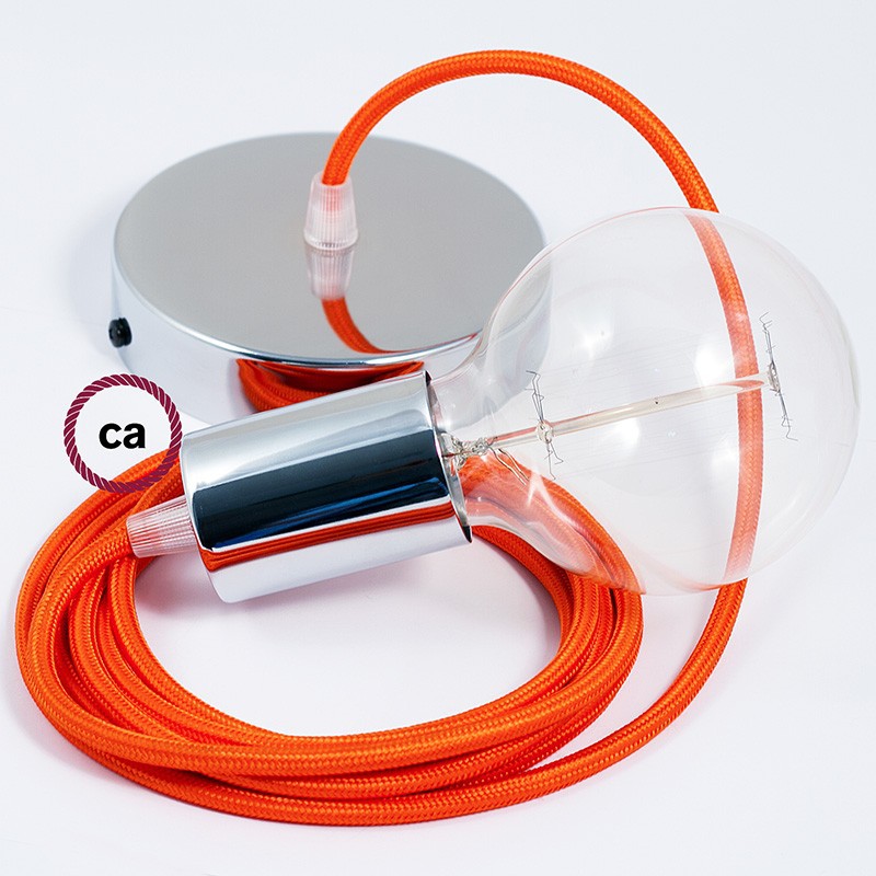 Sastavi viseću lampu s tekstilnim kabelom RM15 Narančasti Okrugli rajon. Odaberite boju grla i rozete, dužinu kabela i da li želite već sastavljenu lampu ili u kompletu DIY "sastavi sam".