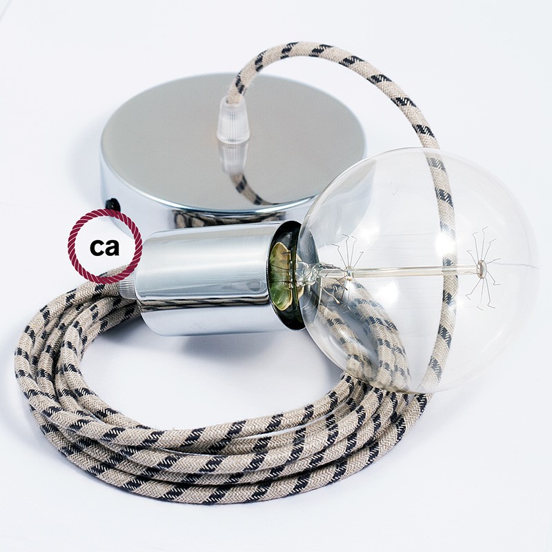 Sastavi viseću lampu s tekstilnim kabelom RD53 Crte, Braon Okrugli Pamuk I Prirodni Lan. Odaberite boju grla i rozete, dužinu kabela i da li želite već sastavljenu lampu ili u kompletu DIY "sastavi sam".