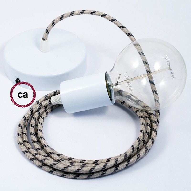 Sastavi viseću lampu s tekstilnim kabelom RD54 Crte, Antracit Okrugli Pamuk I Prirodni Lan. Odaberite boju grla i rozete, dužinu kabela i da li želite već sastavljenu lampu ili u kompletu DIY "sastavi sam".