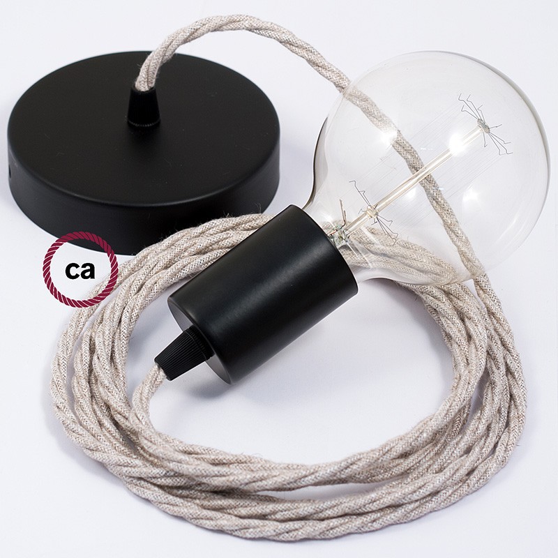Sastavi viseću lampu s tekstilnim kabelom TN01 Neutralan Zamotan Prirodni Lan. Odaberite boju grla i rozete, dužinu kabela i da li želite već sastavljenu lampu ili u kompletu DIY "sastavi sam".