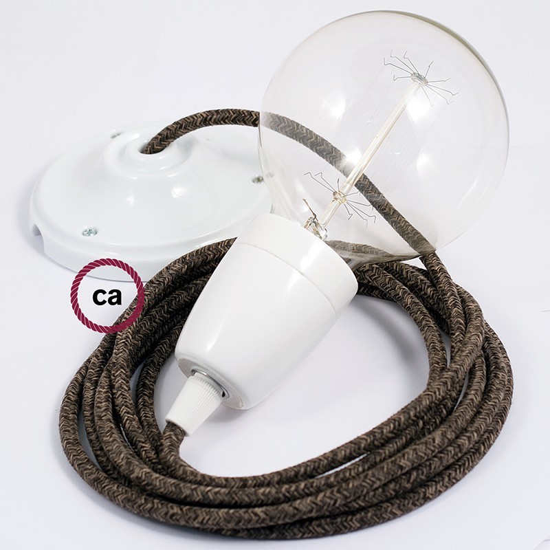 Sastavi viseću porculansku lampu s tekstilnim kabelom RN04 Smeđi Okrugli Prirodni Lan. Odaberite duljinu kabela i želite li već sastavljenu lampu ili DIY "sastavi sam" komplet..