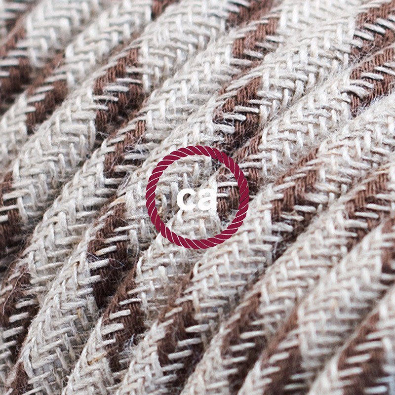 Okrugli tekstilni kabel RD53 crte, prirodni lan in braon pamuk: 2 m (150 cm od utičnice do prekidaća + 50 cm od prekidača do Posaluce) 2x0,75, HAR certifikat, Made in Italy