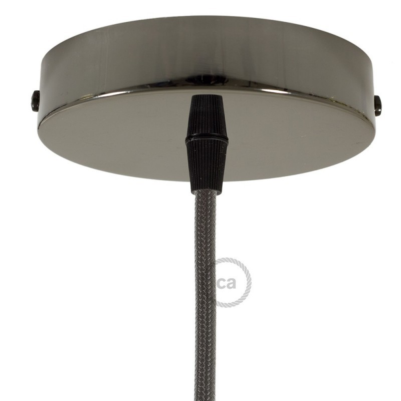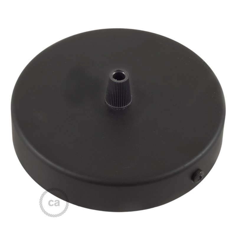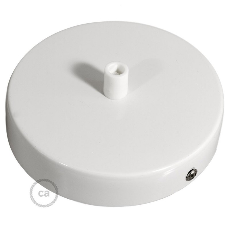 Metalna rozeta s 1 rupom i priborom za montažu, koristi se za kreiranje zidne ili stropne lampe s jednim izvorom svjetlosti.