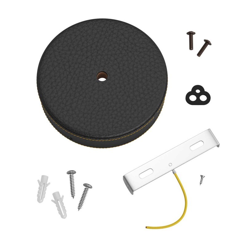 Kožna drvena stropna rozeta s priborom za montažu koristi se za sastavljanje zidne ili stropne lampe ili lustera s bilo kojim okruglim ili pletenim tekstilnim kabelom.