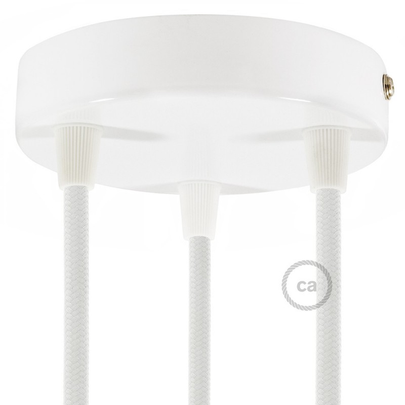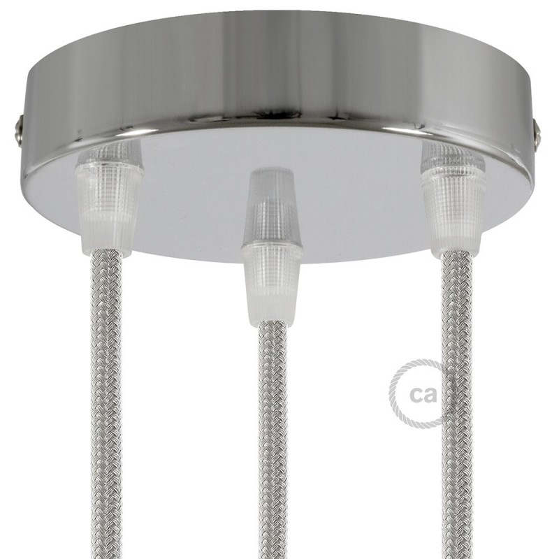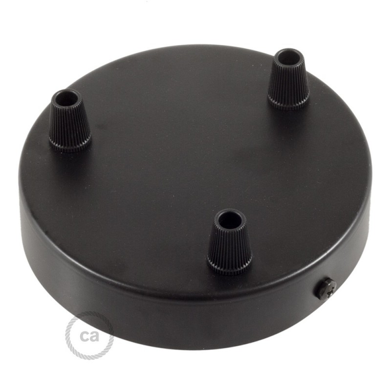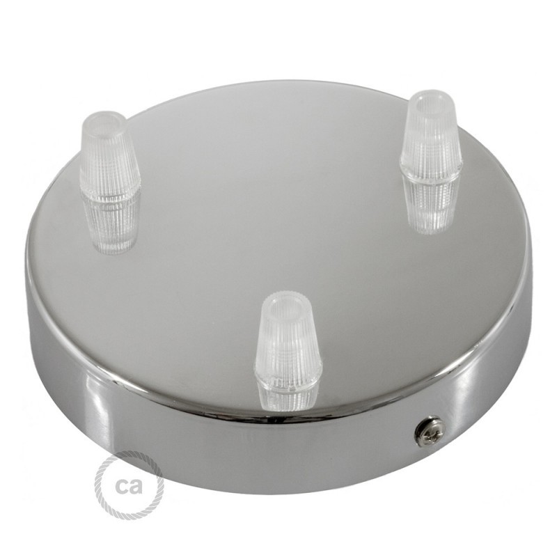 Metalna rozeta s 3 rupe i priborom za montažu koristi se za kreiranje zidne ili stropne lampe s tri izvora svjetlosti.