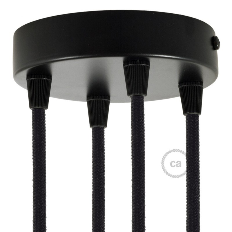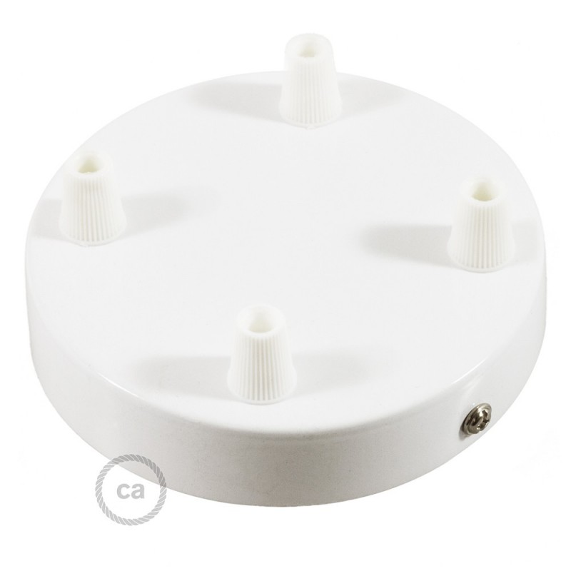 Metalna rozeta s 4 rupe i priborom za montažu koristi se za kreiranje zidne ili stropne lampe s četiri izvora svjetlosti.