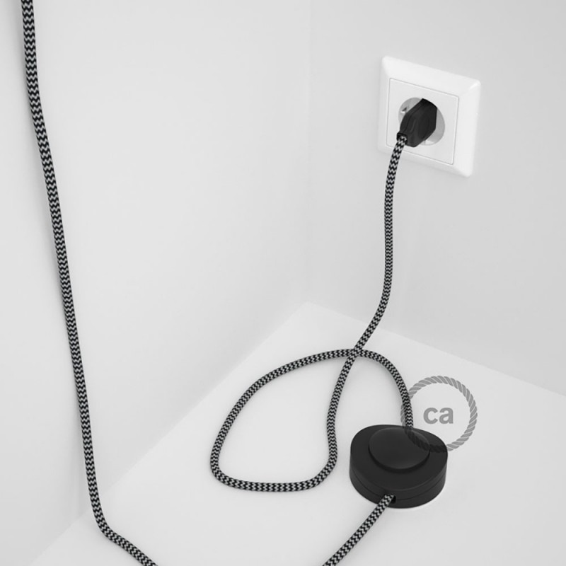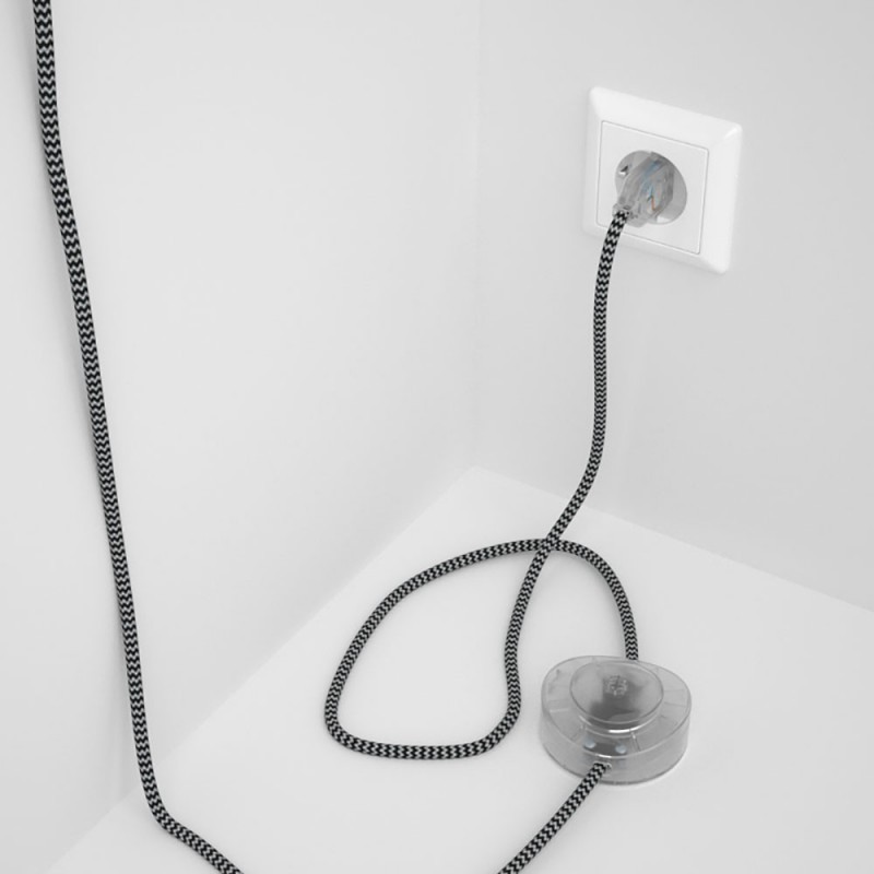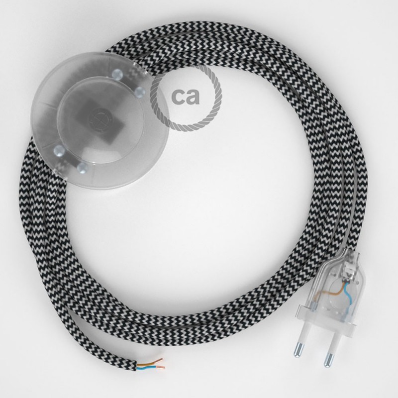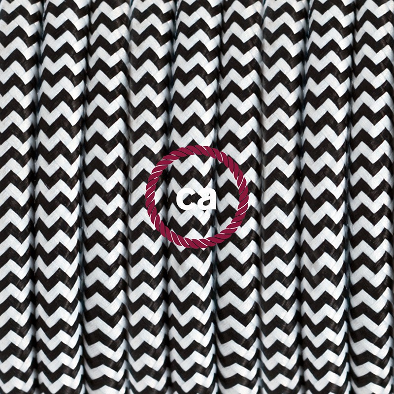 RZ04 Cik-Cak Crni Okrugli tekstilni kabel rajon idealan je za koloritno osvježenje ili obnovu vaših stolnih i posteljnih lampi.