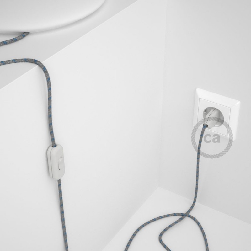 RD55 Crte, Nebesko Plavi Okrugli tekstilni kabel Pamuk I Prirodni Lan idealan je za koloritno osvježenje ili obnovu vaših stolnih i posteljnih lampi.