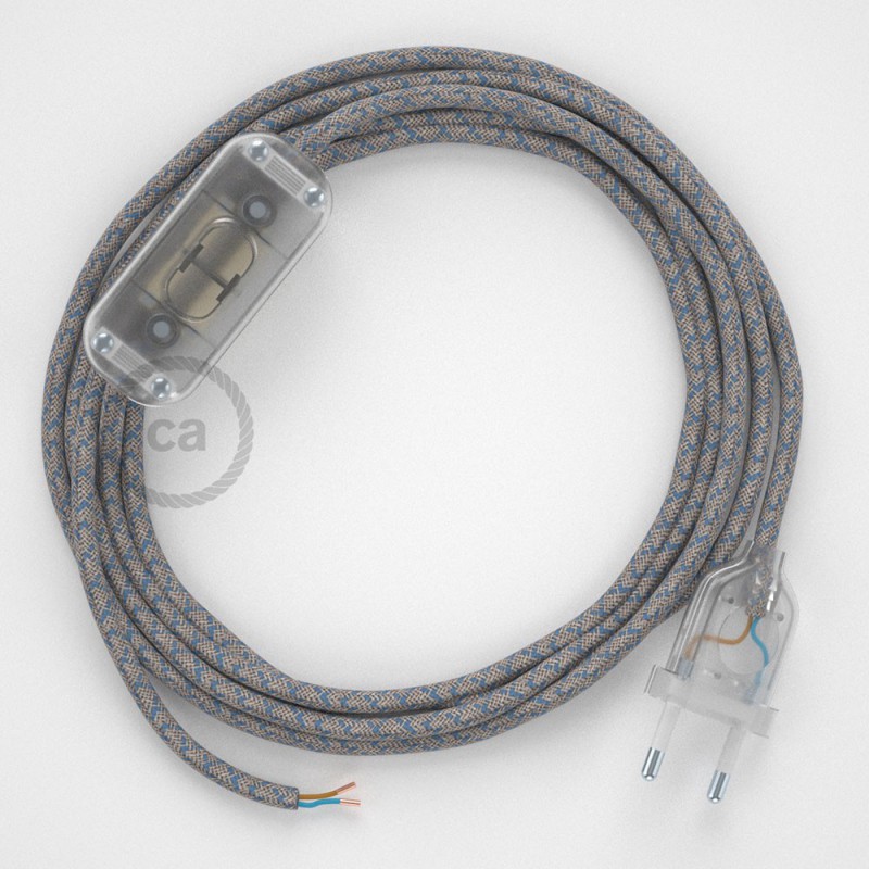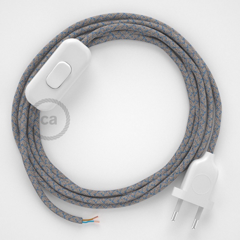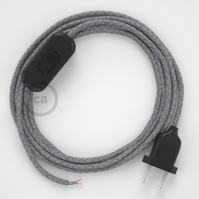 RD65 Romb, Nebesko Plavi Okrugli tekstilni kabel Pamuk I Prirodni Lan idealan je za koloritno osvježenje ili obnovu vaših stolnih i posteljnih lampi.