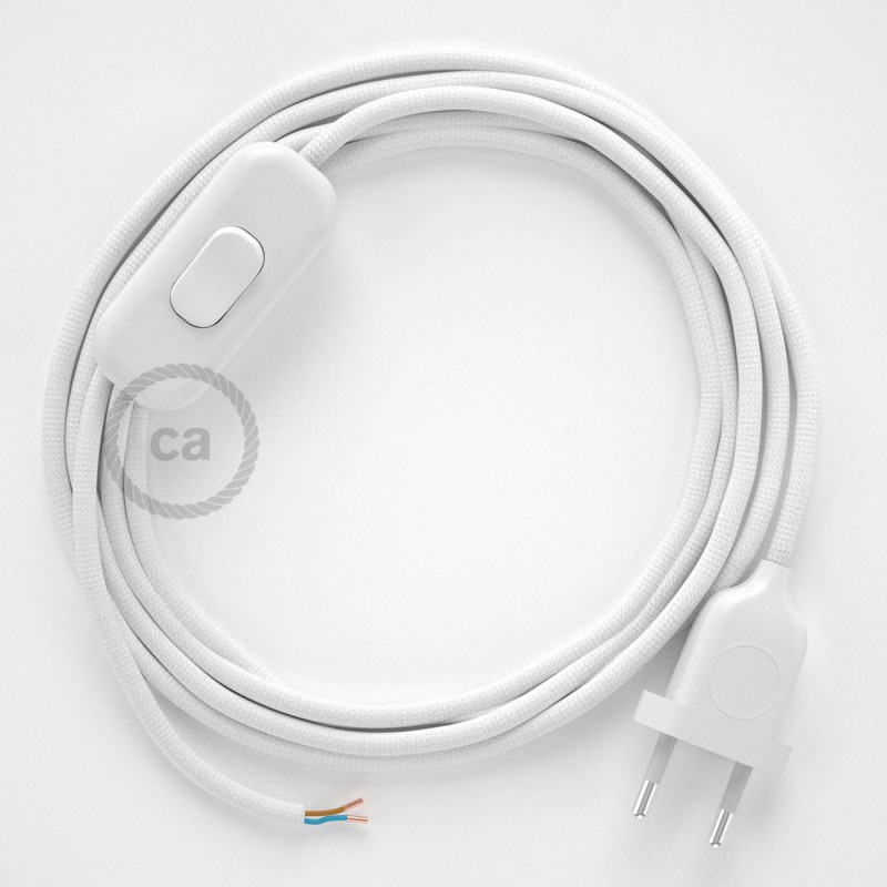 RM01 Bijeli Okrugli tekstilni kabel idealan je za koloritno osvježenje ili obnovu vaših stolnih i posteljnih lampi.