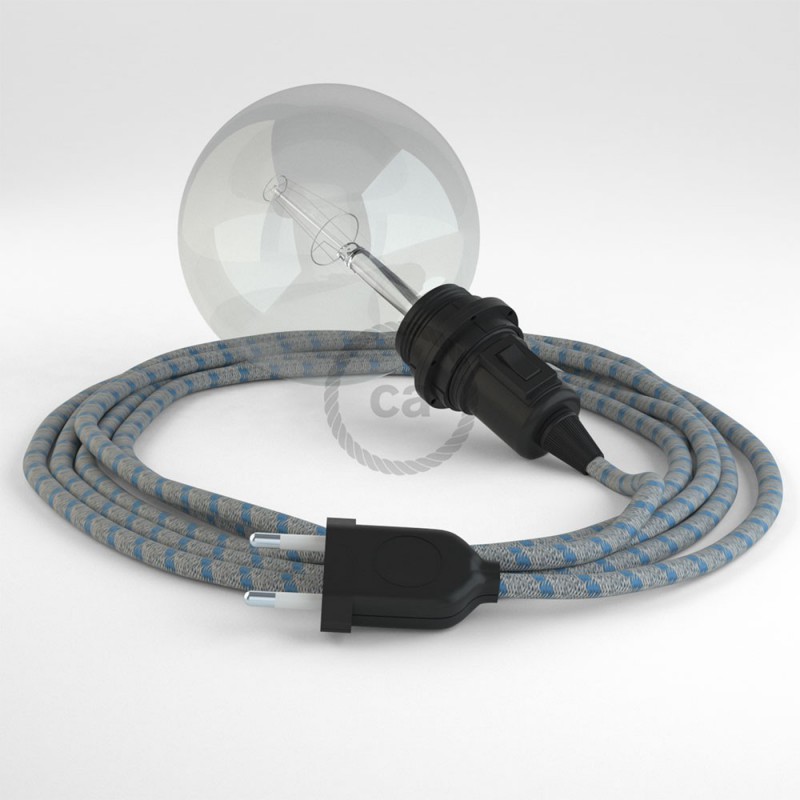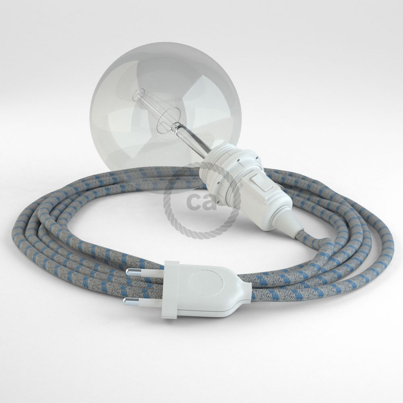 Viseća lampa "Zmija" za sjenilo RD55 Crte, Nebesko Plavi Okrugli Pamuk I Prirodni Lan: odaberite boju utikača i grla i duljinu kabela u odabranoj boji.