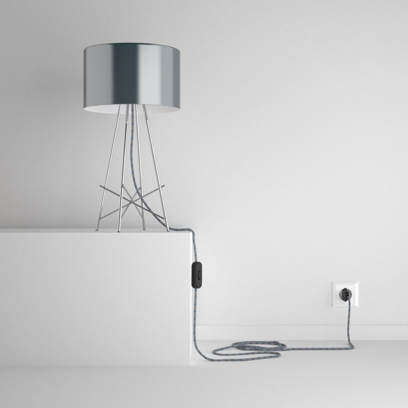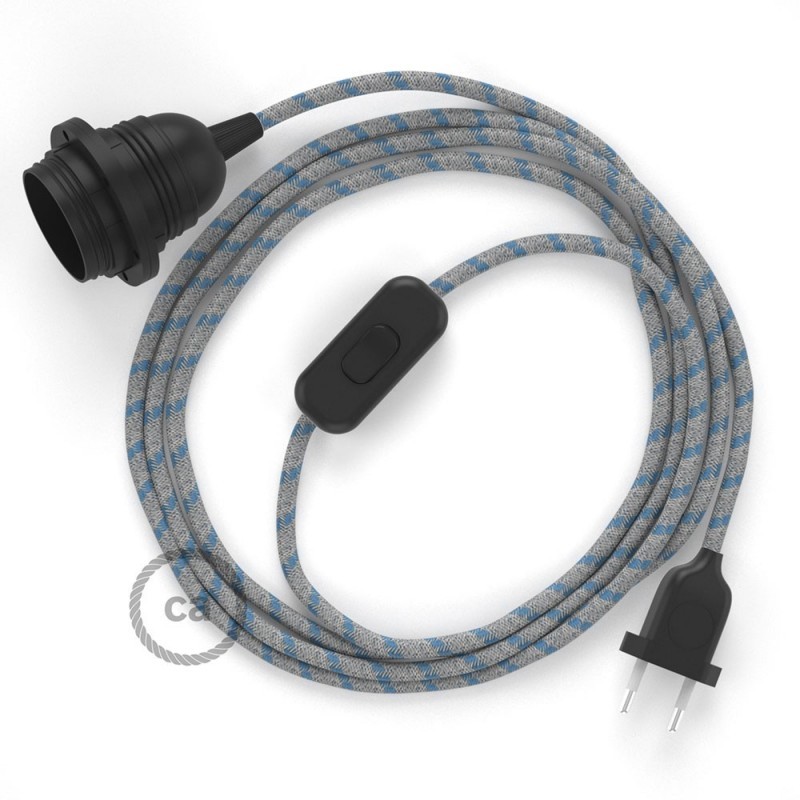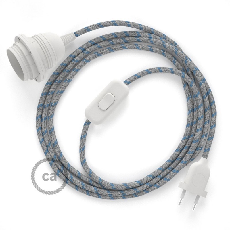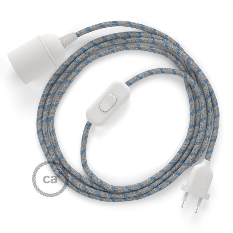 Komplet s prekidačem, grlom i tekstilnim kabelom - Crte, Nebesko Plavi Pamuk I Prirodni Lan RD55