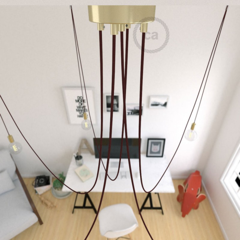 Rajonski kabel boje burgundskog vina i mesingana rozeta i držač za lampu, predstavljaju idealnu kombinaciju Pauka za klasične i elegantne prostore.