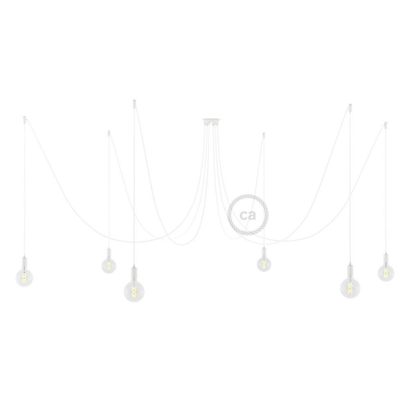 U potpuno bijeloj boji! Pauk s bijelim rajonskim kabelom i bijelim metalnim komponentama predstavlja idealno rješenje za kreiranje sjajne viseće rasvjete koja je vrlo prijatna za oči.