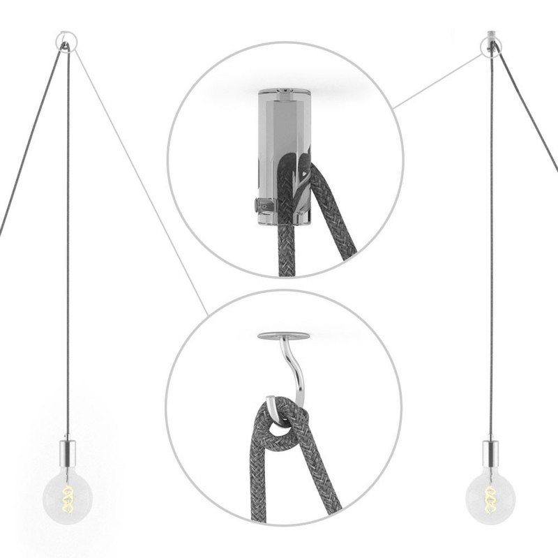 Viseća lampa “Metal Spider”, je sjajan proizvod kompanije Creative-Cables, koju možete oblikovati po vašoj želji: možete je montirate s konusnim ili cilindričnim kablovskim obujmicama i izabrati metalne kljukice ili decentralizirane kabele za pričvršćivanje na strop. Osim toga, Pauk možete kupiti u kompletu “URADI SAM” ili s već montiranim pojedinačnim visećim lampama.