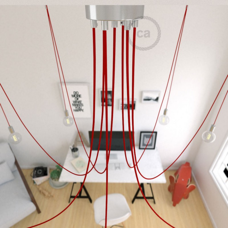 Ako želite da vašoj prostoriji date osobni i moderan pečat, Pauk načinjen od crvenog rajonskog kabela i kromiranih metalnih komponenti predstavlja idealan izbor.