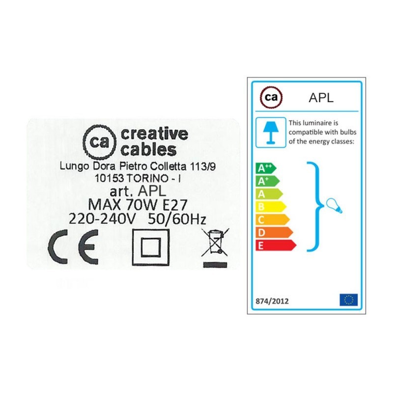Ova jedinstvena zidna lampa a grlom E27 dizajnirana je kako bi izložila vaše omiljene žarulje koje vise na tekstilnom kabelu u vašoj omiljenoj boji. Rozeta i grlo za žarulje su drveni, izrađeni u Italiji od prirodnog neobrađenog drveta i prekriveni različitim kožnim presvlakama.