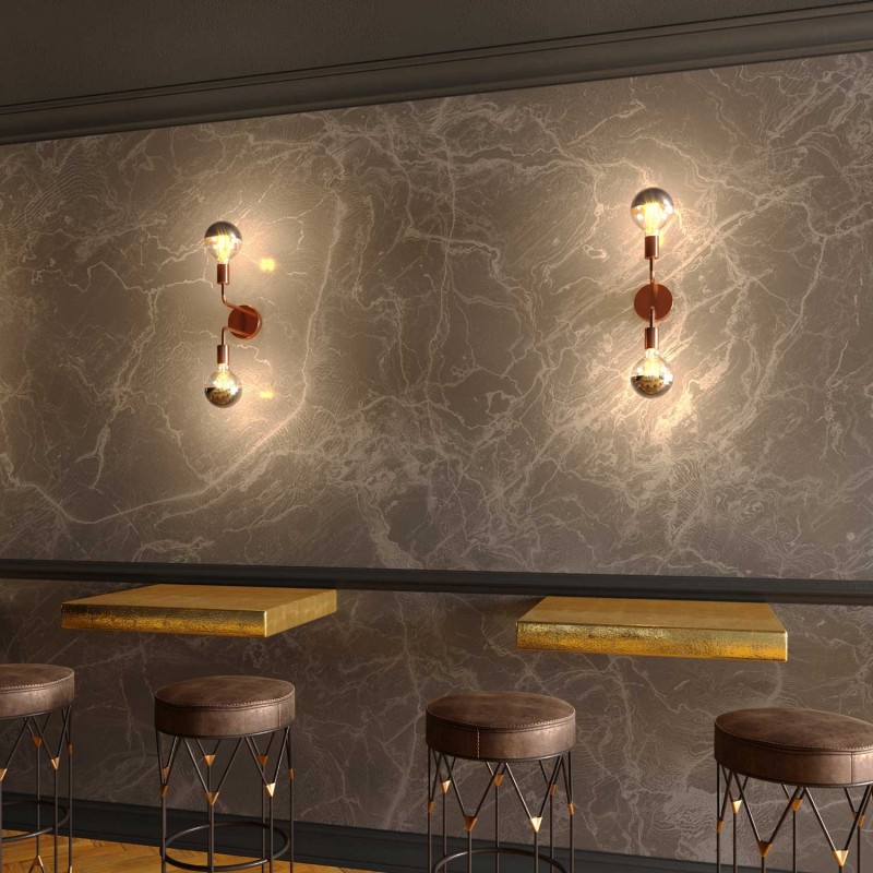 Ova metalna zidna lampa sa dvostrukim savijenim L produžecima može biti orijentirana okomito ili vodoravno stvarajući potpuno različite efekte raspodjele svjetla u vašem interijeru.