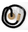 Viseća lampa izrađena od drveta i XL tekstilnog kabela. 100% proizvedeno u Italiji od najkvalitetnijih materijala.