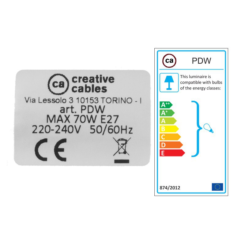 Viseća lampa izrađena od drveta i 2XL tekstilnog kabela. 100% proizvedeno u Italiji od najkvalitetnijih materijala.