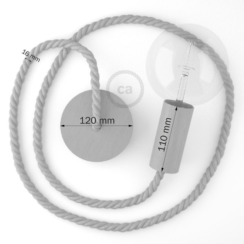 Viseća lampa od drveta, set s omotanim XL 16mm tekstilnim kabelom, prekrivenim prirodnim lanom, pamukom i jutom, Country.