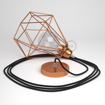 Viseća lampa s ukrasnim kavezom Diamant - bakrena s RC04 crnim pamučnim kabelom