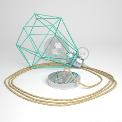 Komplet "Creative-Cables viseća lampa s ukrasnim kavezom Diamant sastoji se od E27 grla za žarulju, metalne stropne rozeta i tekstilnog električnog kabela.