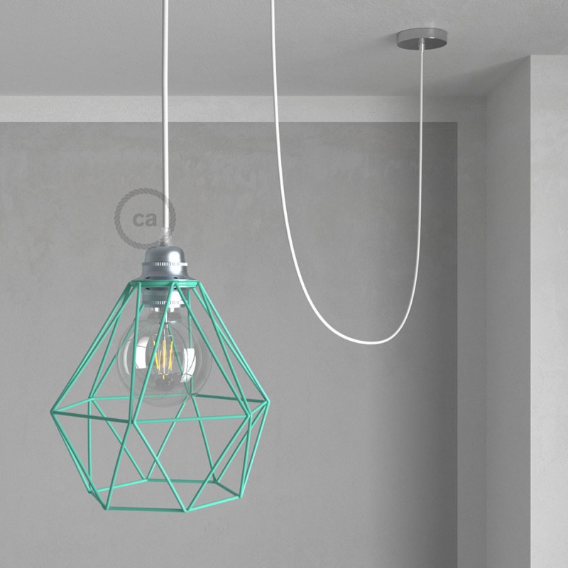 Viseća lampa s ukrasnim kavezom Diamant - tirkizna s bijelim pamučnim RC01 kabelom