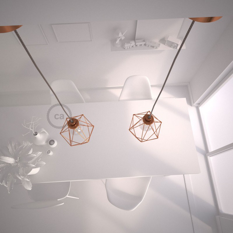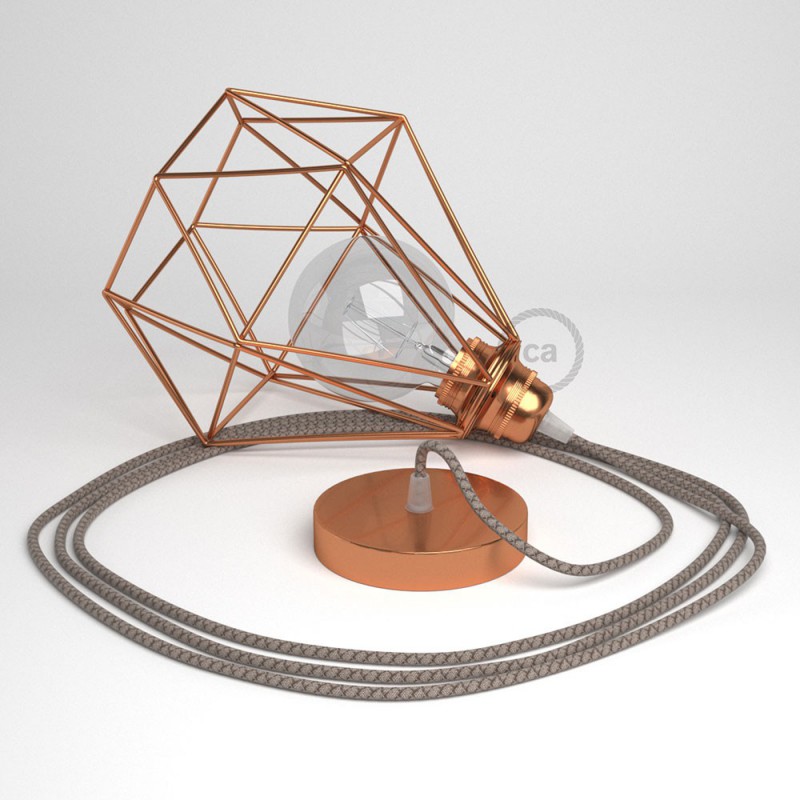 Komplet "Creative-Cables viseća lampa s ukrasnim kavezom Diamant sastoji se od E27 grla za žarulju, metalne stropne rozeta i tekstilnog električnog kabela.