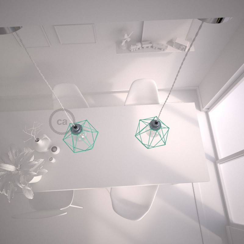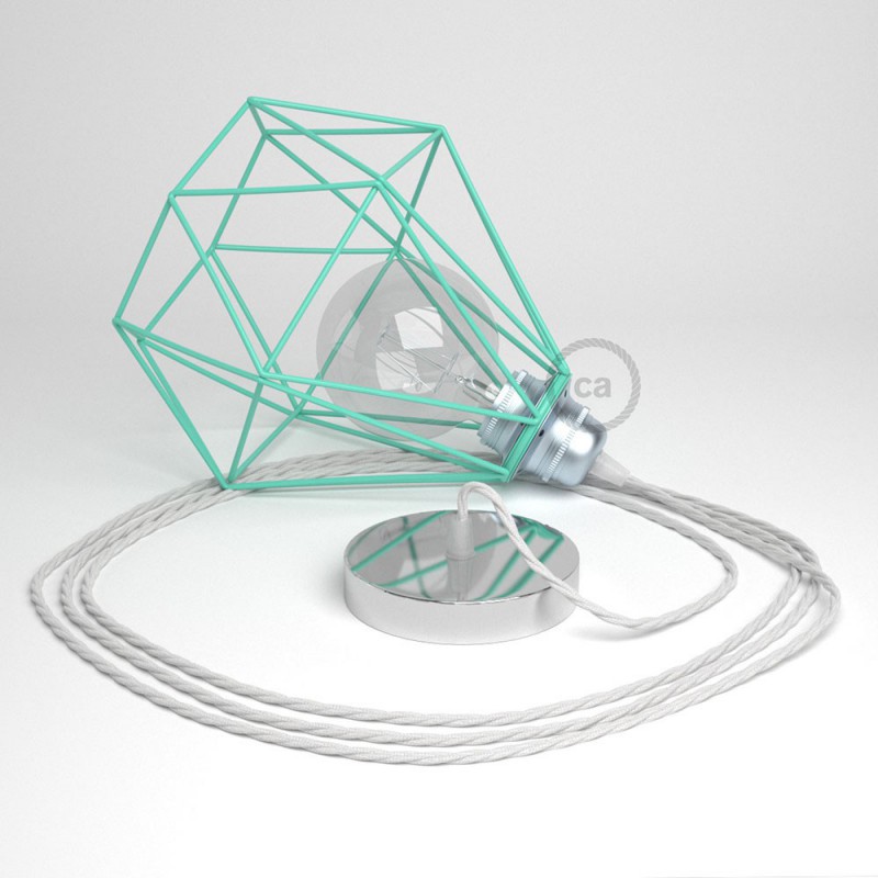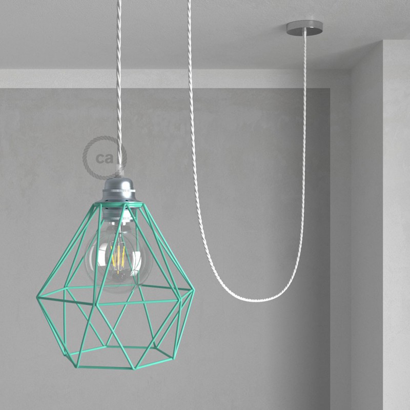 Viseća lampa s ukrasnim kavezom Diamant - tirkizna s bijelim pamučnim TC01 kabelom