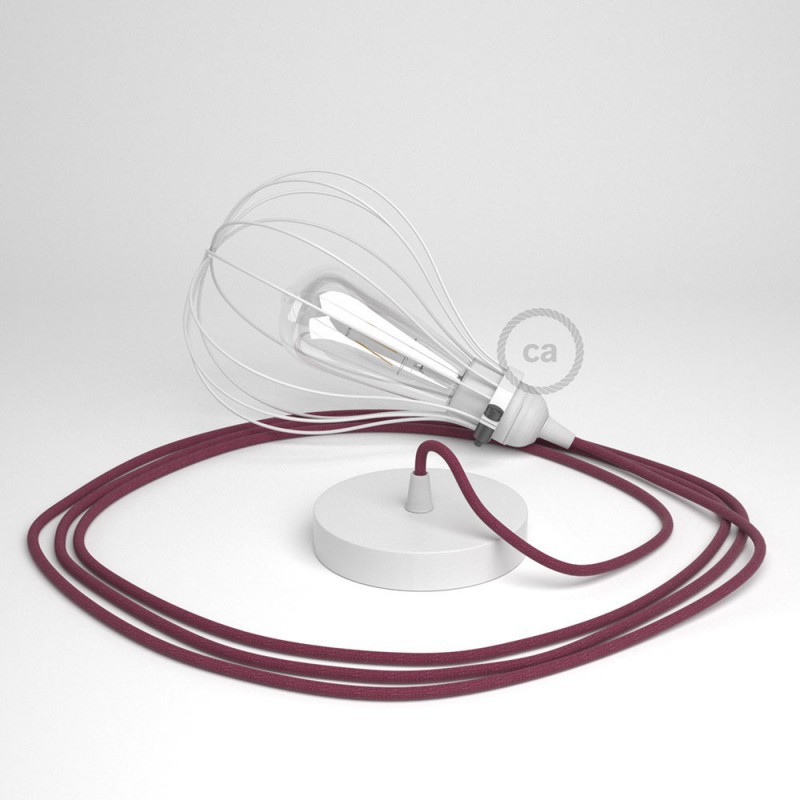 Viseća lampa s ukrasnim kavezom Drop - bijela s bordo pamučnim RC32 kabelom