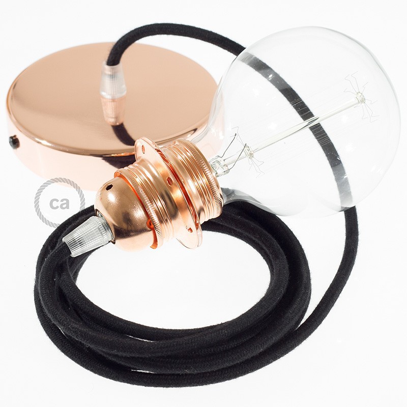 Sastavi viseću lampu sa sjenilom s tekstilnim kabelom RC04 Crni Okrugli Pamuk. Odaberite boju grla i rozete, dužinu kabela i da li želite već sastavljenu lampu ili u kompletu DIY "sastavi sam".
