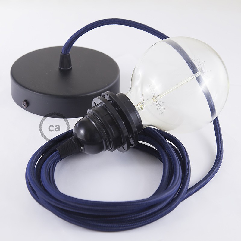 Sastavi viseću lampu sa sjenilom s tekstilnim kabelom RM20 Tamno Plavi Okrugli rajon. Odaberite boju grla i rozete, dužinu kabela i da li želite već sastavljenu lampu ili u kompletu DIY "sastavi sam".
