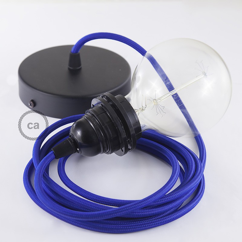 Sastavi viseću lampu sa sjenilom s tekstilnim kabelom RM12 Plavi Okrugli rajon. Odaberite boju grla i rozete, dužinu kabela i da li želite već sastavljenu lampu ili u kompletu DIY "sastavi sam".