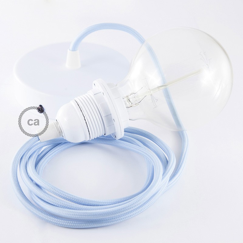 Sastavi viseću lampu sa sjenilom s tekstilnim kabelom RM17 Baby Blue Okrugli rajon. Odaberite boju grla i rozete, dužinu kabela i da li želite već sastavljenu lampu ili u kompletu DIY "sastavi sam".
